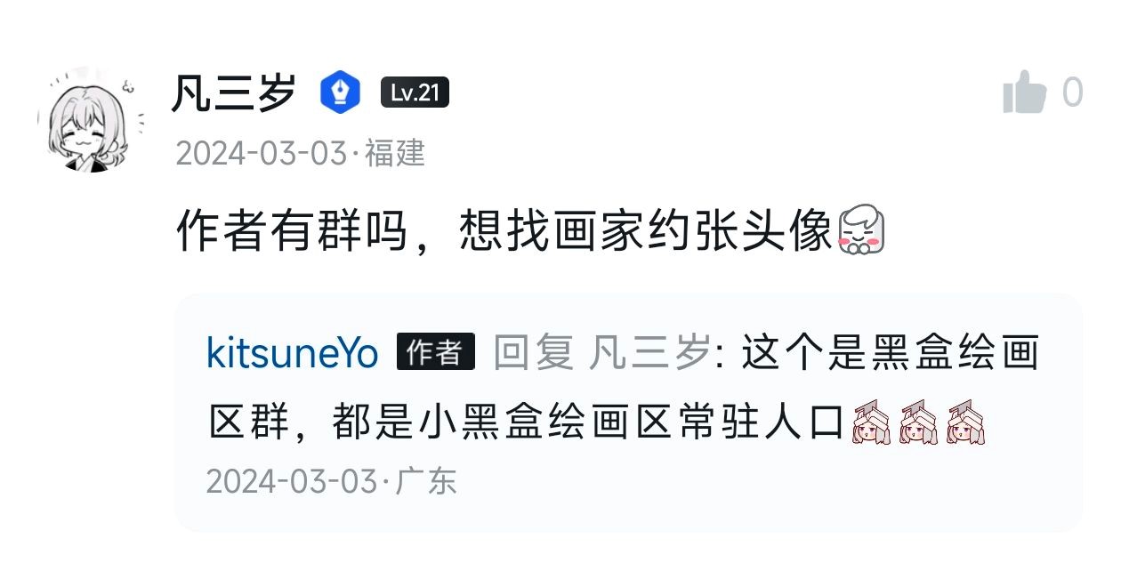 事情的起因是这样的:23年的时候,我发现小黑盒居然有一个特殊的绘画隔板!找画师帮我画原画头像,我选择在里面逛街。一进门就看到了老师的画《kitsuneYo》,当场就注意了。